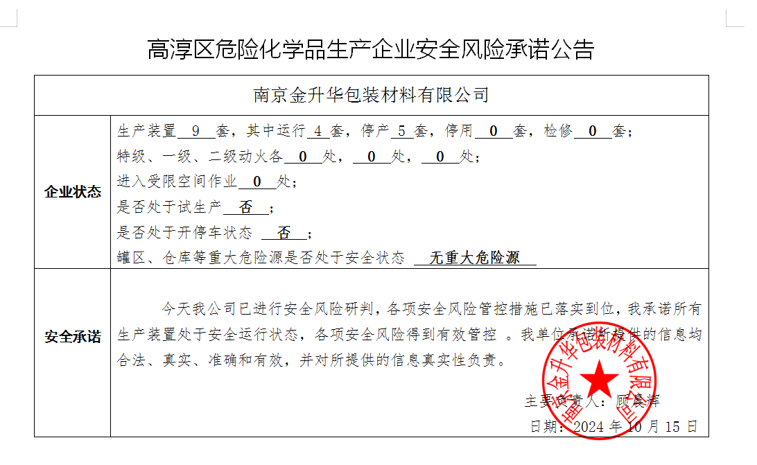 | 信息名稱: | 高淳區危險化學品生產企業安全風險承諾公告 |