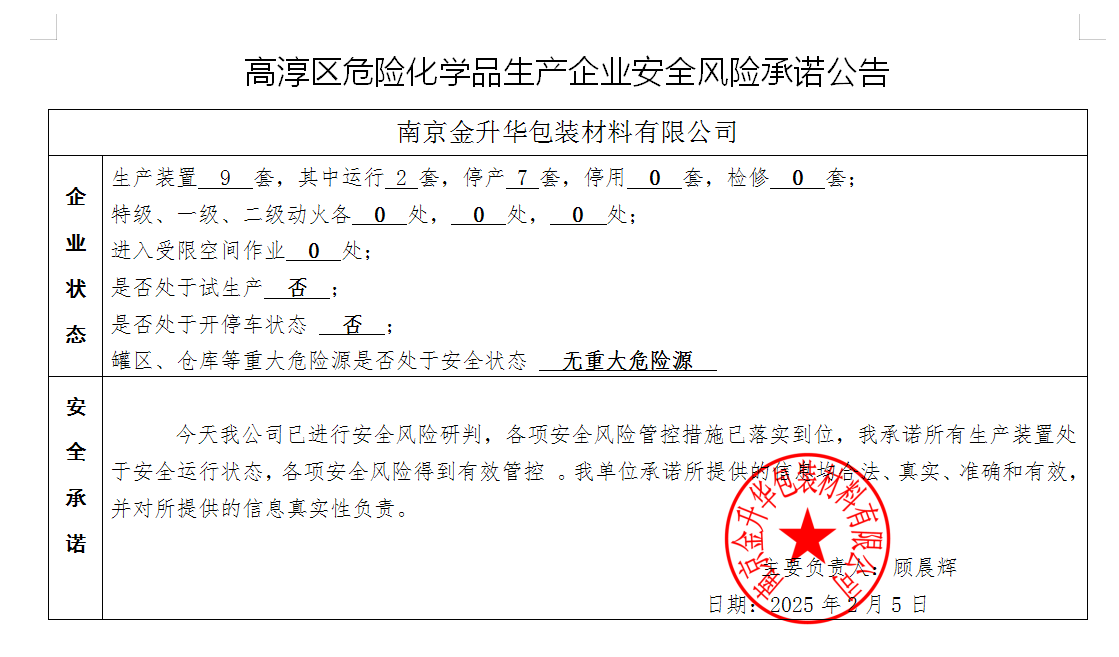 | 信息名稱: | 高淳區危險化學品生產企業安全風險承諾公告 |
