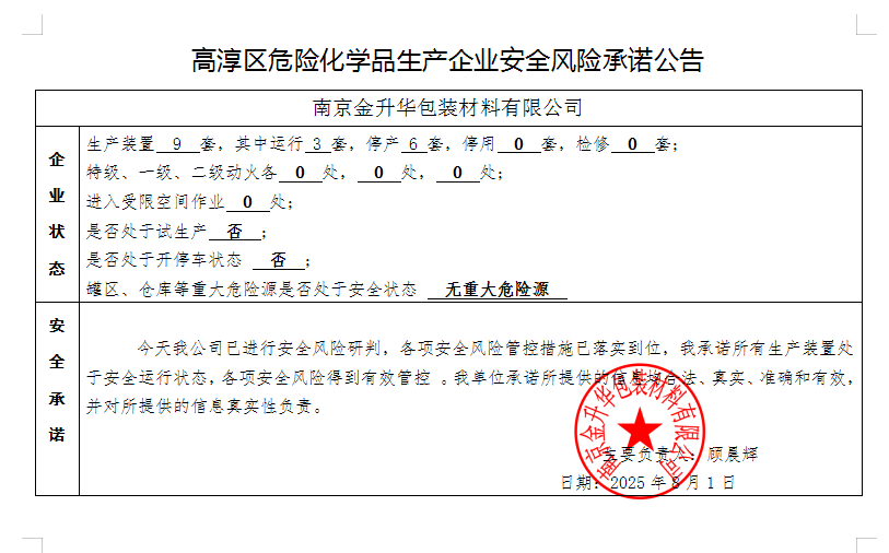 | 信息名稱: | 高淳區危險化學品生產企業安全風險承諾公告 |